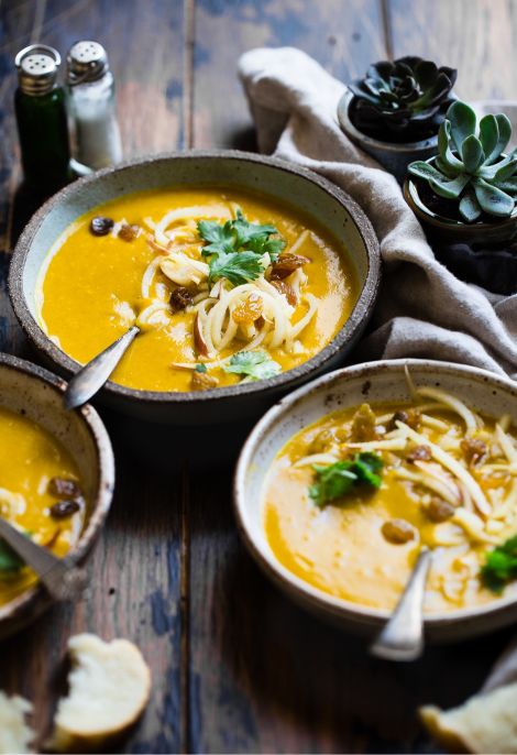 Zuppa cremosa di patate dolci e cavolfiore al curry