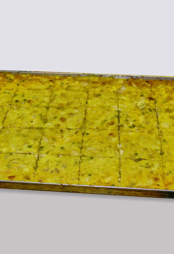 Fare raffreddare e tagliare a quadretti.